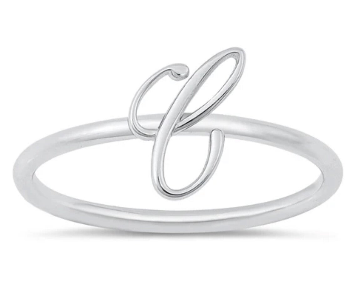 Silver Initial Ring - C